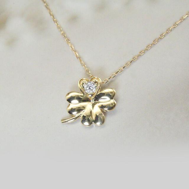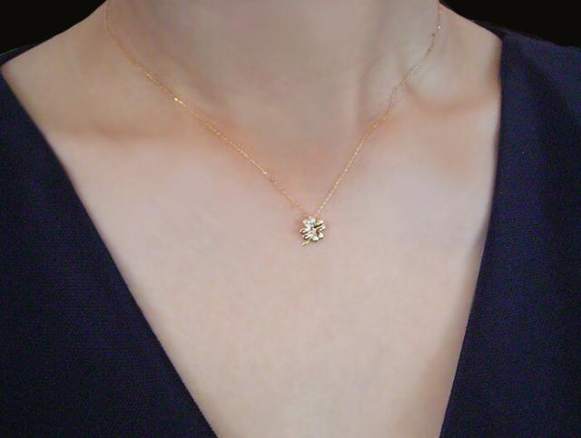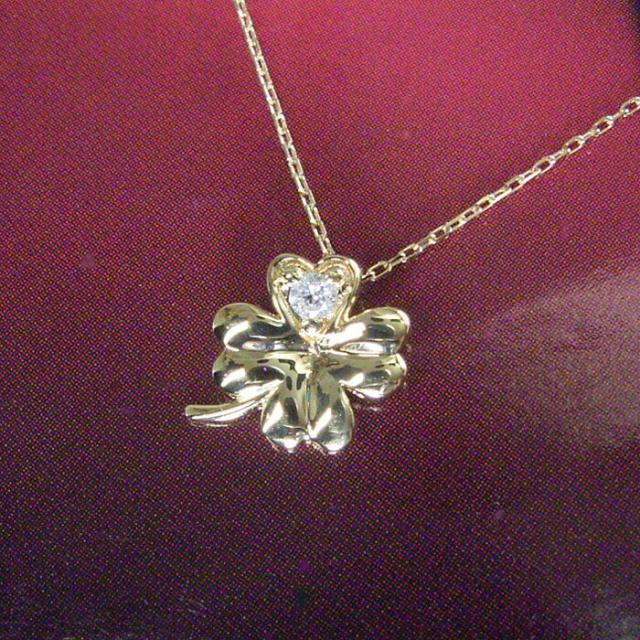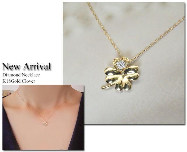 ネックレス k18 18金 天然 ダイヤモンド クローバー 一粒 K18 ゴールド 幸運 モチーフ アクセサリー 品番ma-0327 2営業日前後の発送予定