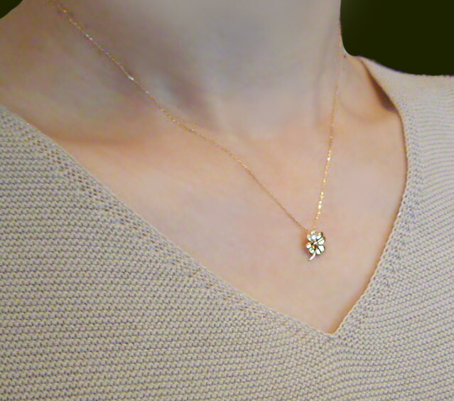 上質18金でデザインしたクローバーに天然ダイヤモンドセットした幸運のクローバーネックレスをお届け致します。