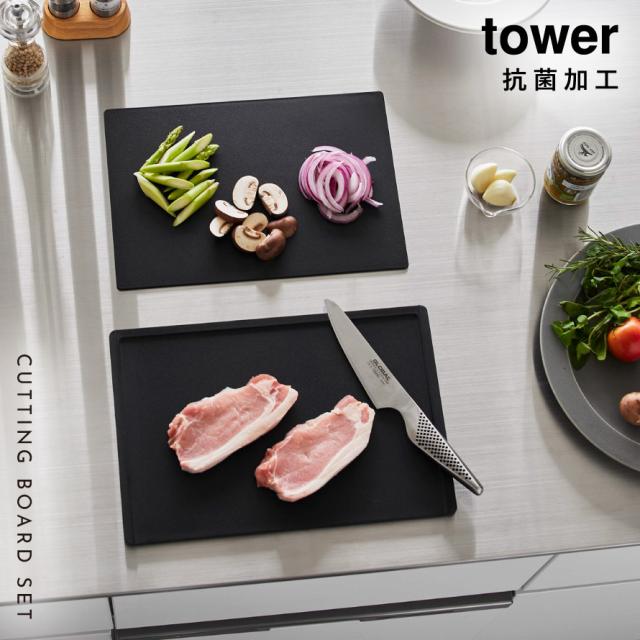 まな板 シートまな板 食洗機対応 抗菌 滑りにくい フチ付き 薄型 黒 白 タワー tower 山崎実業 抗菌まな板&シートまな板セット タワー