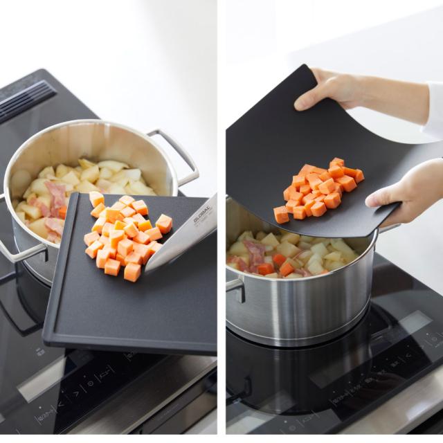 シートまな板は、鍋などに具材を入れやすい柔らかい素材。