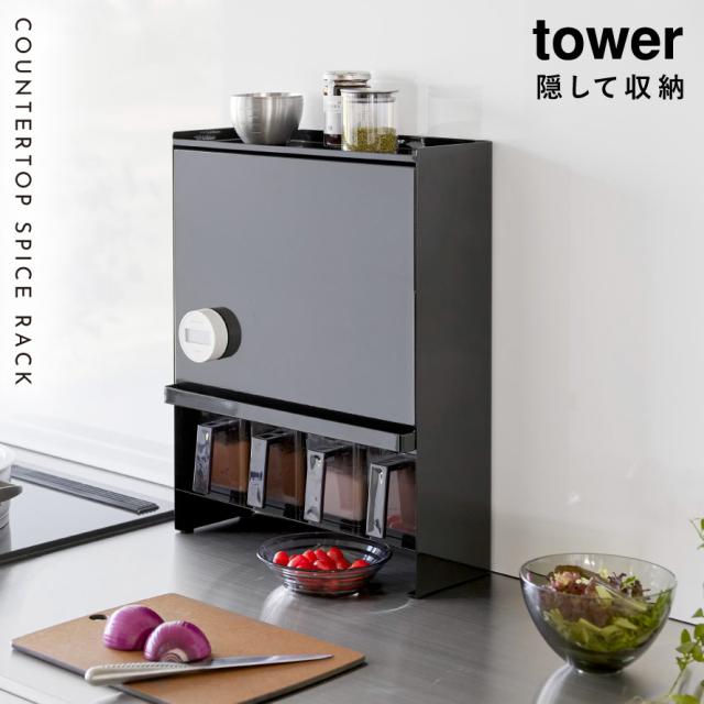 スパイスラック tower スリム 調味料ラック タワー 山崎実業 前が開く 隠せる調味料ラック タワー メーカー直送