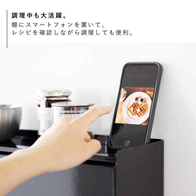 棚には、スマートフォンを置いて、レシピを確認しながら調理しても便利ですね。