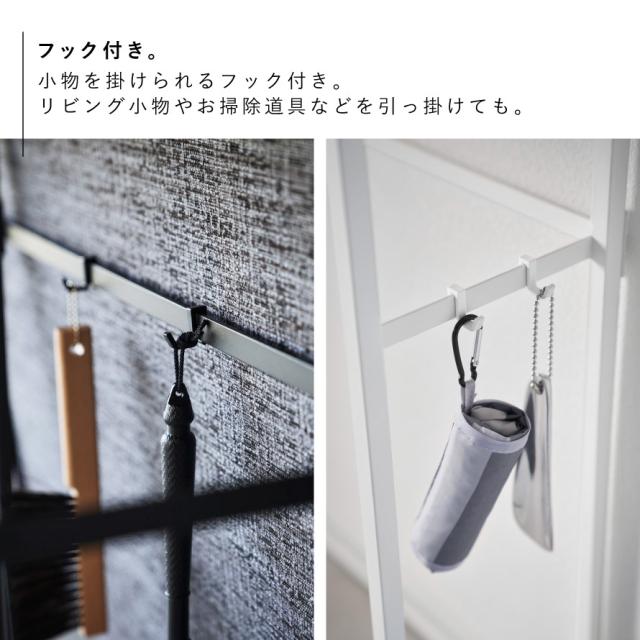 小物を掛けられるフック付き。リビング小物やお掃除道具などを引っ掛けても。