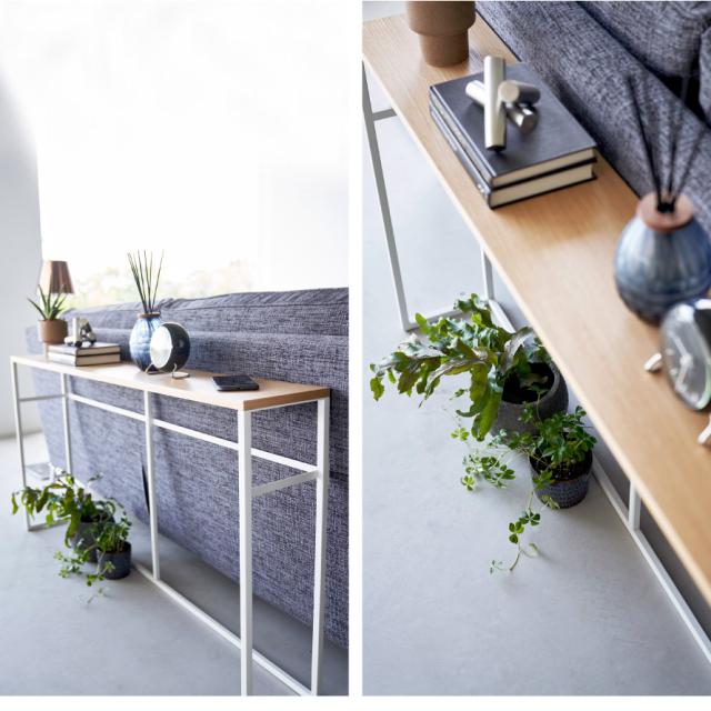 ソファー裏のデッドスペースを有効活用できるスリムでワイドなコンソールテーブル。