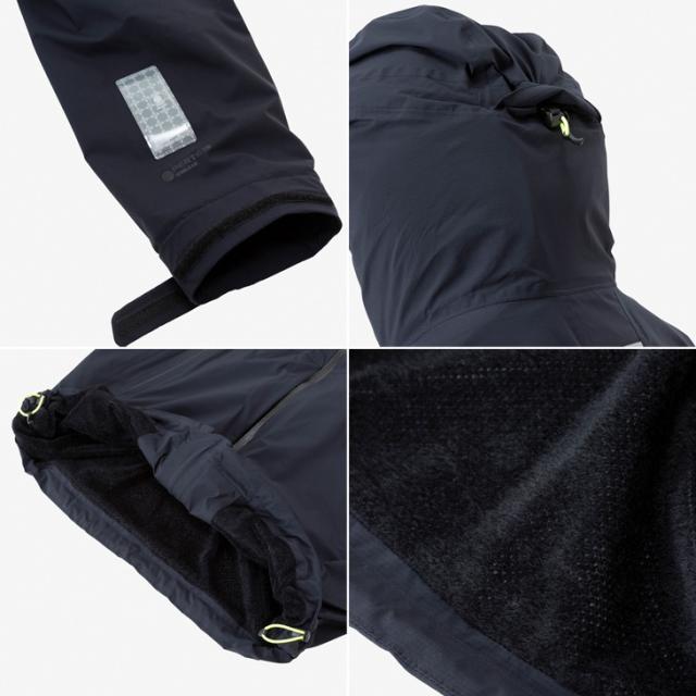 防水性に加え、高い透湿性と通気性が特長。軽量で、しなやかな着心地も魅力です。
