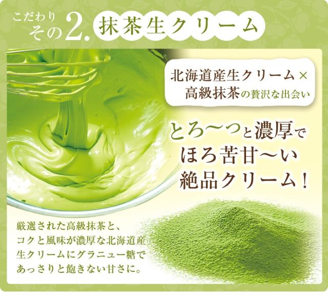 クリーム(国内製造)、乳等を主要原料とする食品(国内製造)、砂糖、加塩卵白、液卵黄、小麦粉、蜜漬け豆、うるち米粉、牛乳、はちみつ、抹茶加工品、水飴、わらびミックス粉、寒天/ソルビトール、乳化剤、香料、糊料(増粘多糖類)、環状オリゴ糖、着色料(クチナシ)、加工でん粉、メタリン酸Na、酸化防止剤(V.C)、(一部に小麦・卵・乳成分・大豆・ゼラチンを含む)