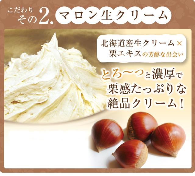 クリーム(国内製造)、乳等を主要原料とする食品(国内製造)、砂糖、加塩卵白、液卵黄、小麦粉、栗甘露煮、牛乳、はちみつ、マロンペースト加工品、ほうじ茶/環状オリゴ糖、乳化剤、香料、着色料(クチナシ、カラメル)、メタリン酸Na、糊料(増粘多糖類)、酸化防止剤(V.C)、漂白剤(次亜硫酸Na)、(一部に小麦・卵・乳成分・大豆・ゼラチンを含む)