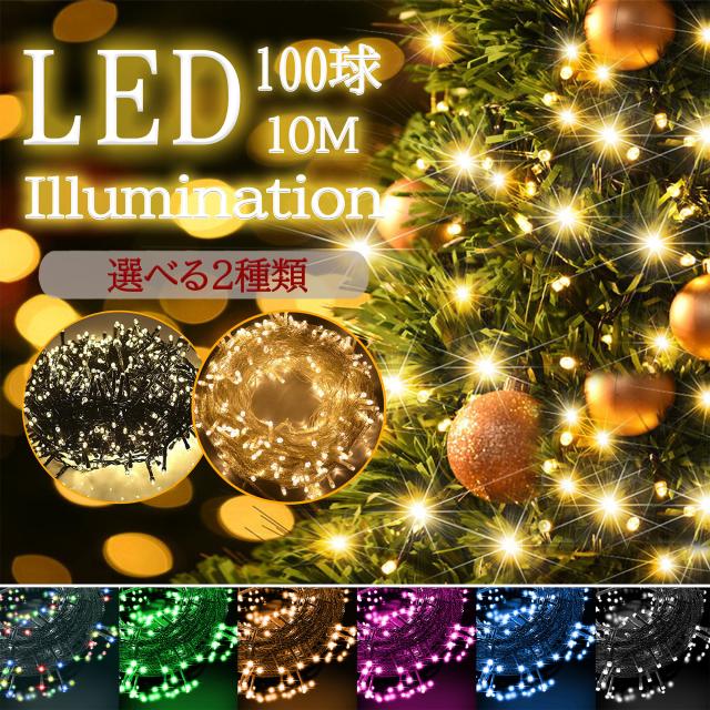 イルミネーション クリスマス 10m 100球 8パターン点灯 ストレート led 防水加工 コントローラー 連結可 おしゃれ 電飾 装飾 ツリー 飾り付け イルミネーションライト ガーデンライト 自宅 店舗用 業務用