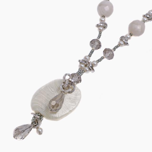 ベネチアンガラスネックレス ベネチアングラス ハンドメイドアクセ ロングネックレス ホワイト 白 ベネチアングラスペンダント