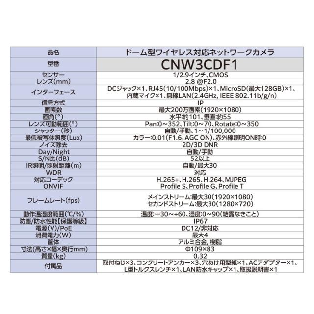 ■CNW3SZ11に増設できる無線接続対応のドーム型カメラ