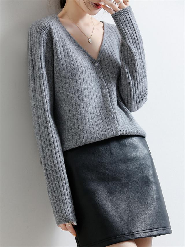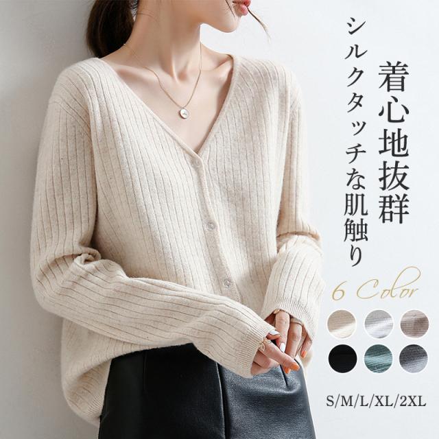 ニットカーディガン レディース カーディガン ニット アウター 羽織り セーター 長袖 Vネック ショート 秋 冬 トップス 前開