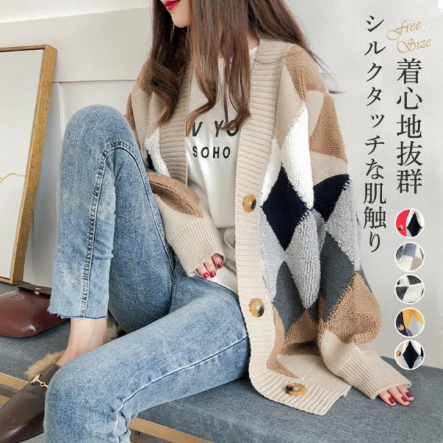 カーディガン レディース ニットカーディガン アウター ボア Vネック 長袖 セーター 秋 冬 春 厚手 羽織り トップス 前開き