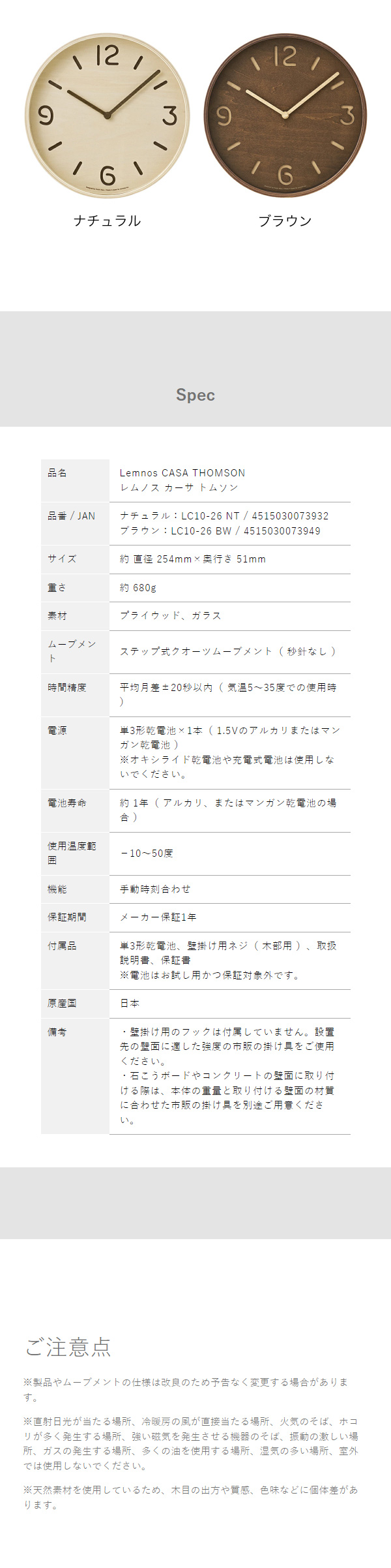 [ CASA THOMSON 25.4cm ]レムノス 掛け時計 壁掛け時計 トムソン おしゃれ シンプル ウォールクロック 壁掛け 掛時計 かけ時計 北欧 リビング インテリア タカタレムノス LC10-26【送料無料】