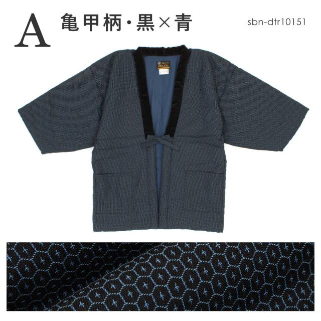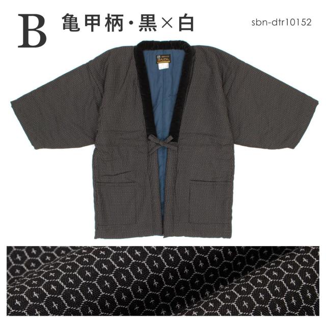 半纏 メンズ はんてん 大判 綿入り 紳士 ちゃんちゃんこ 冬 あったか 男性 ルームウェア 部屋着 防寒 黒 青 白 亀甲 久留米織 手づくり 先染め 光延織物 ハンテン どてら 日本製 LL 送料無料