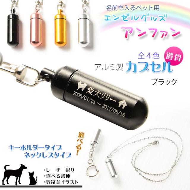 手元供養【名前入りオーダーメイド:エンジェルウィング(天使の翼)・アルミ製遺骨カプセル ブラック】ネコポス便送料無料 ペット用品 仏具 メモリアル 遺骨ジュエリー 遺骨カプセル 分骨