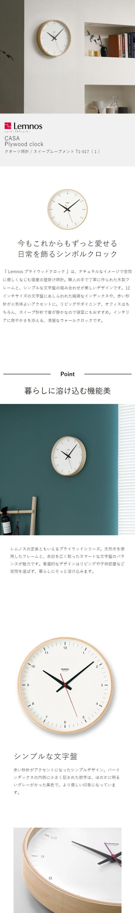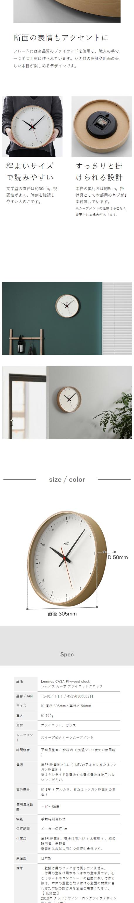 [ CASA Plywood clock 30.5cm ]レムノス 掛け時計 壁掛け時計 プライウッド クロック おしゃれ シンプル ウォールクロック 壁掛け 掛時計 かけ時計 北欧 リビング インテリア タカタレムノス T1-017【送料無料】