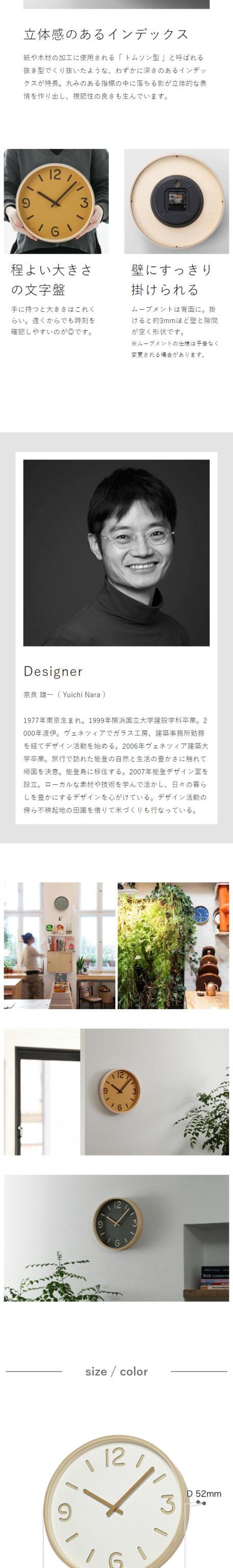 Lemnosトムソンペーパーは、木と紙の異素材の組み合わせが生み出す表情が美しいウォールクロック。文字盤の指標をくり抜いて表現したユニークなデザインで、リビングやダイニングも◎。