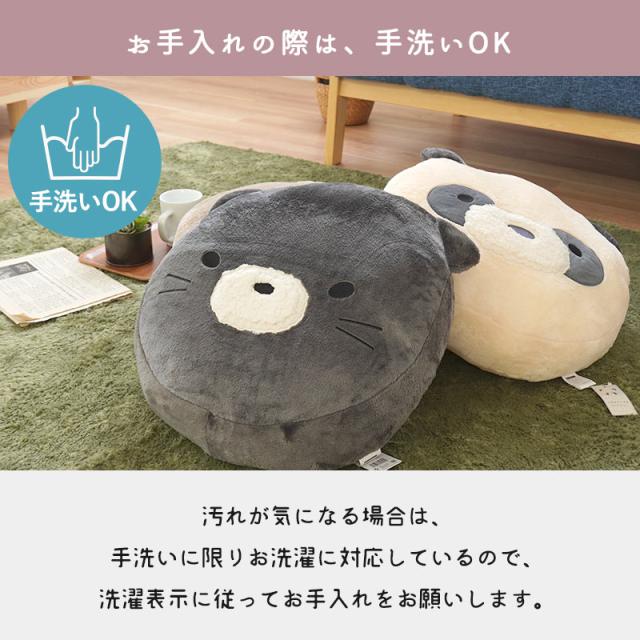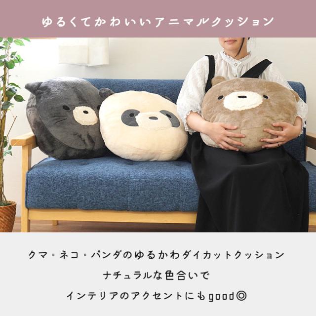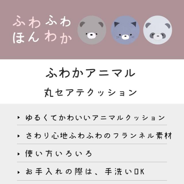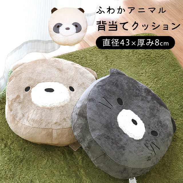 [ keyword | ラウンドクッション 「ふわかアニマル」 背あてクッション フロアクッション 直径43×8cm フランネル クッション ふわふわ かわいい ぬいぐるみ 動物 クマ ネコ パンダ ]