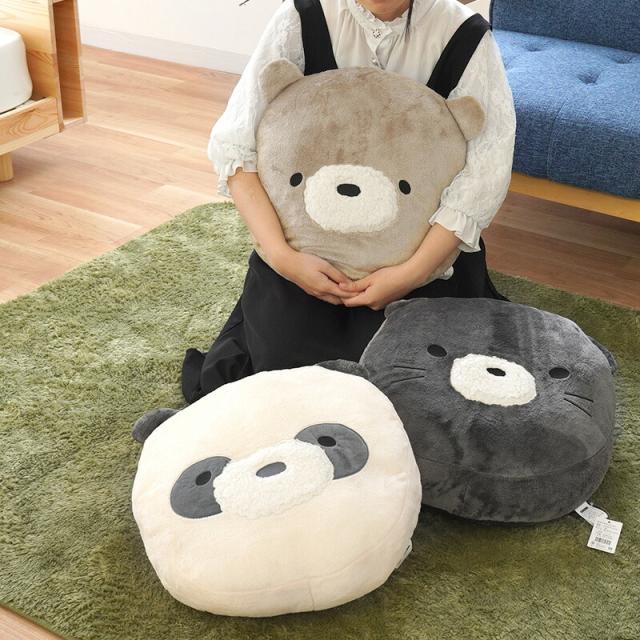 ラウンドクッション 「ふわかアニマル」ぬいぐるみ 背あて クッション フロアクッション 直径43×8cm フランネル クマ ネコ パンダ