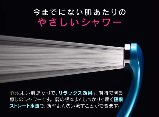 - 直径0.3mmの金属噴板の穴から飛び出す微細シャワーは、今までにないやさしい浴び心地を実現しています。
