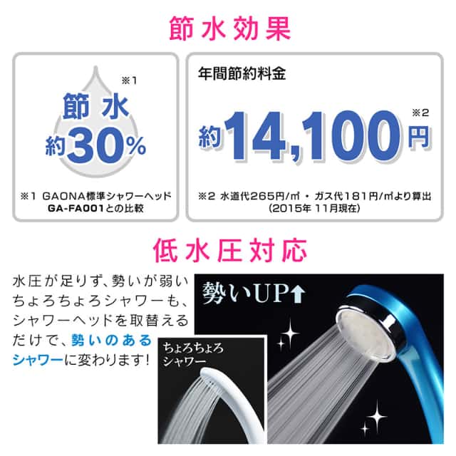 GAONA シルキーシャワーヘッド 節水 極細 シャワー穴0.3mm 低水圧対応 スカッシュブルー GA-FA017 日本製 カクダイ