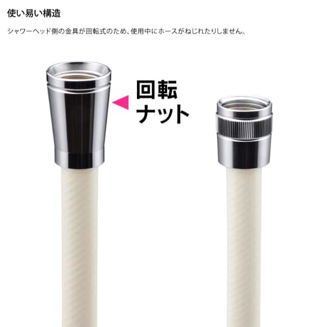 ・シャワーヘッド側の金具が回転するので、ホースのねじれを防ぎます。