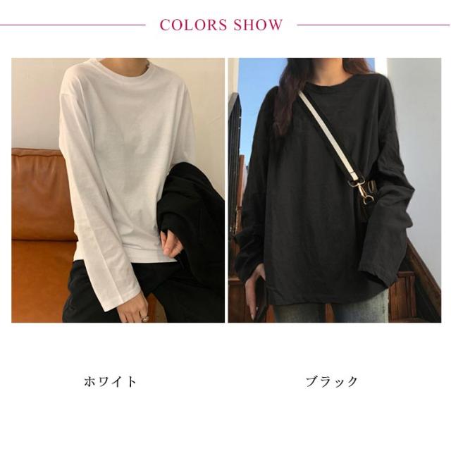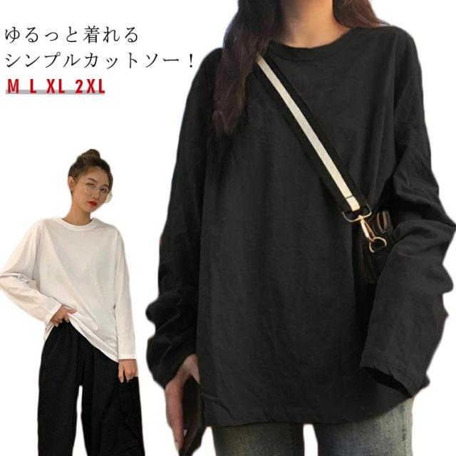 ロンT トップス カットソー 長袖 ゆったり レディース 無地 おしゃれ 韓国 カジュアル 大きいサイズ