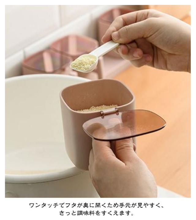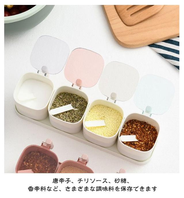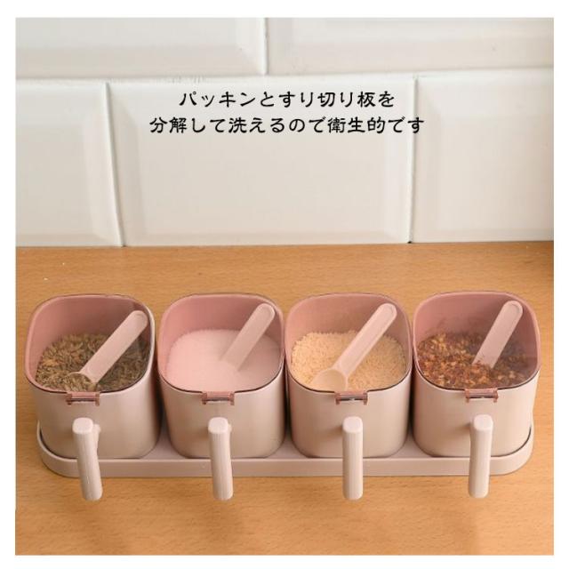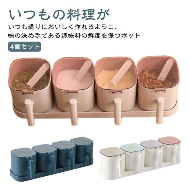 軽量 調味料ケース 砂糖入れ 4個セット 調味料入れ 密閉保存容器 塩入れ パッキン付き キャニスター 調味料ポット 使いやすい 保存容器 スリム コンパクト シンプル ワンタッチ 引っ越し スプーン付き 使いやすい キッチン 便利グッズ おしゃれ 調味料収納