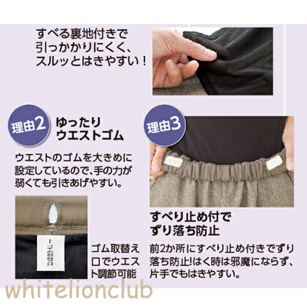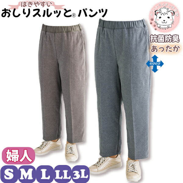 おしりスルッともちもちパンツ 婦人用 履きやすい ズボン 介護用 ズボン 高齢者 リハビリ S/M/L/LL/3L | 介護パンツ 片手で履けるパンツ シニアファッション