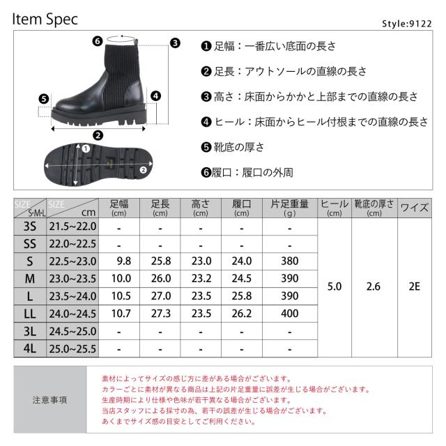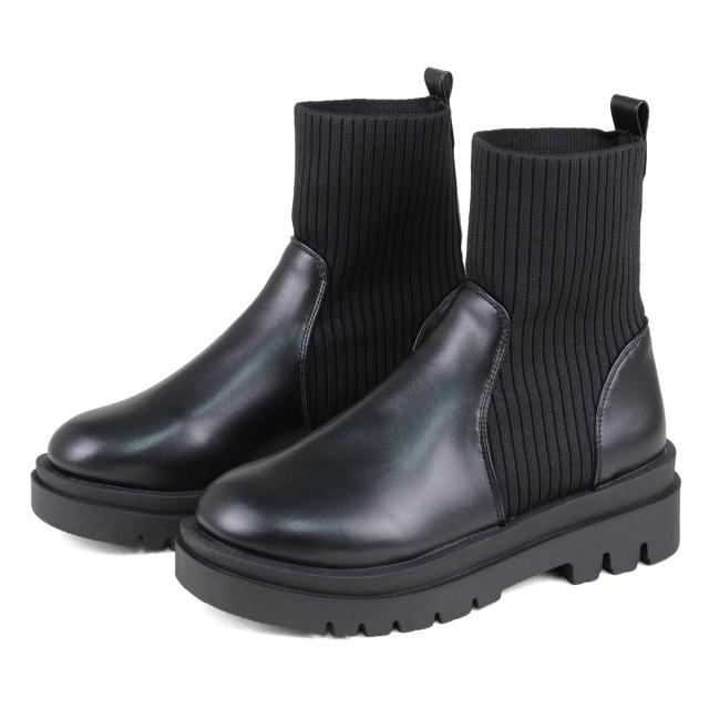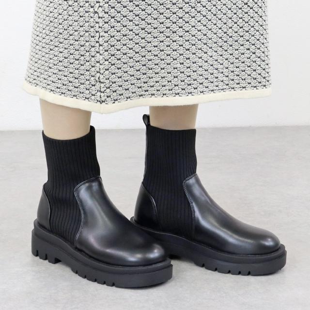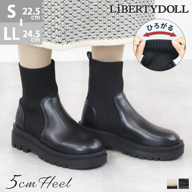 サイドゴアブーツ ニット レディース 5cmヒール ブラック No.9122 22.5cm-24.5cm リバティードール LiBERTYDOLL