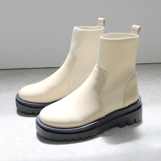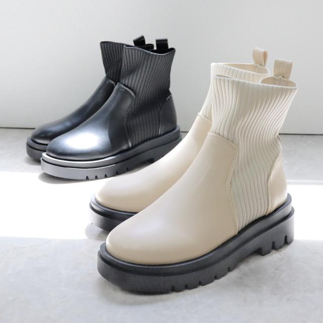 すっきりとした足元に仕上げてくれるリブニットブーツ。