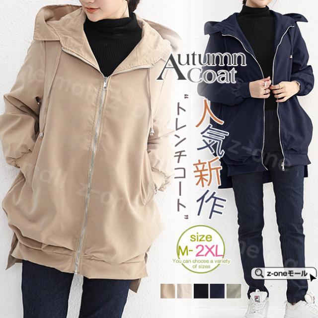 トレンチコート フード付き 春新作 送料無料 無地 レディース ゆったり アウター 春秋アウター ジャケット ロング丈 コート カジュアル 大きいサイズ 通勤 OL 入学式 入園式