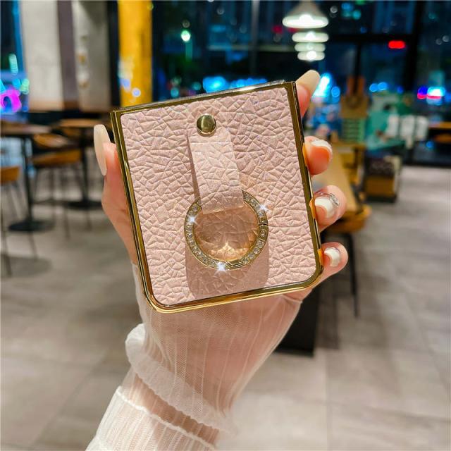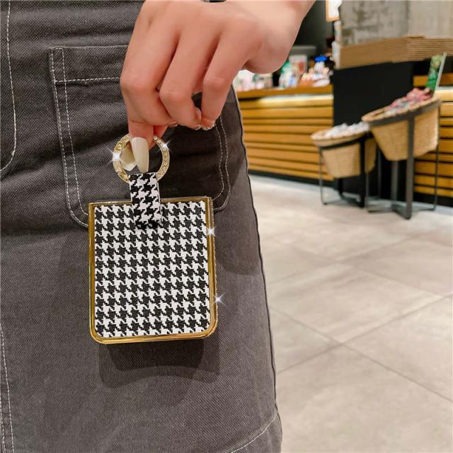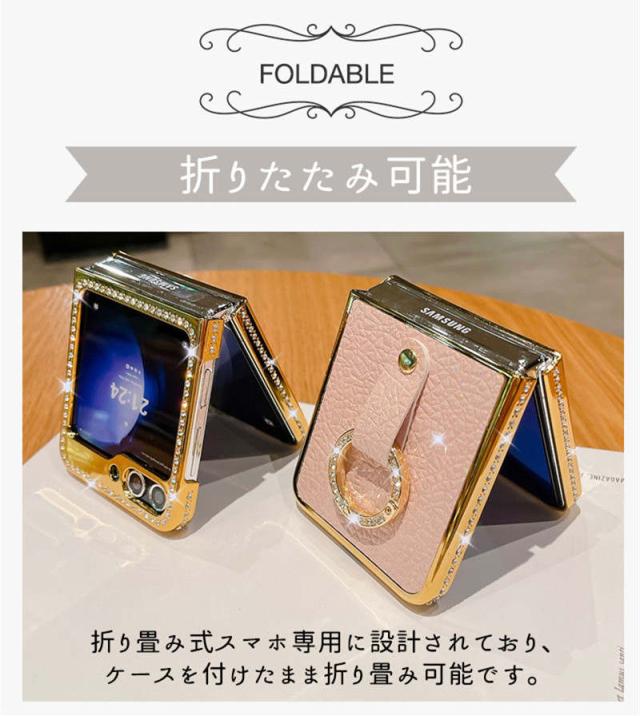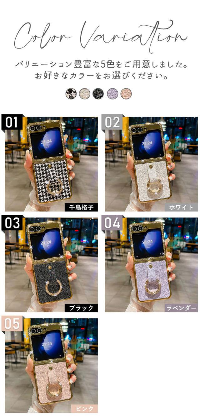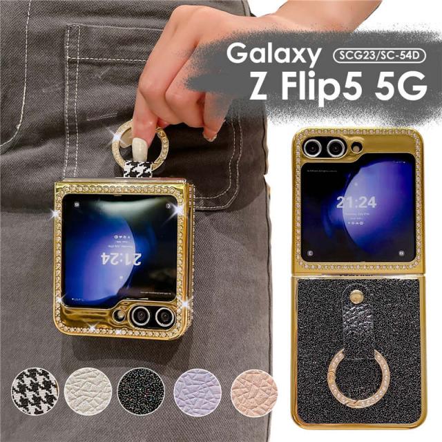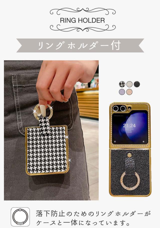 【本日限定ポイント最大10倍】 Galaxy Z Flip5カバー リングホルダー付 Galaxy Z Flip5 5G SCG23/SC-54D ケース カバー 大人かわいい 千鳥格子 革 リング付きGalaxy Z Flip5ケース かわいい おしゃれ メッキ 高級感 ギャラクシーZフリップ5