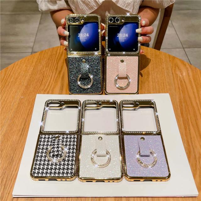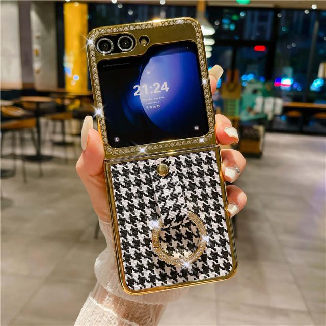 Galaxy Z Flip5カバー リングホルダー付 Galaxy Z Flip5 5G SCG23/SC-54D ケース カバー 大人かわいい 千鳥格子 革 リング付きGalaxy Z Flip5ケース かわいい おしゃれ メッキ 背面保護 ギャラクシーZフリップ5 スマホケース カバー キラキラ 可愛い メッキ加工 高級感 レザーGalaxy Z Flip5 背面ケース 背面カバー キズ防止 耐衝撃Galaxy Z Flip5ケース オシャレ レディース 人気 Galaxy Z Flip5カバー スマホリング 落下防止 ドコモ docomo Galaxy Z Flip5 SCG23ケースGalaxy Z Flip5 SC-54Dケース キラキラ メッキ加工 PC ハードケース Flip5携帯ケース