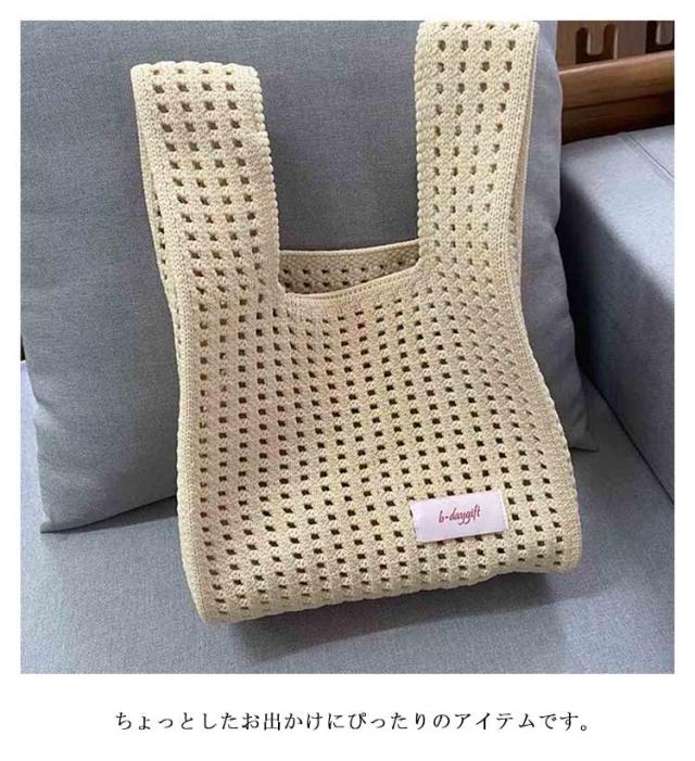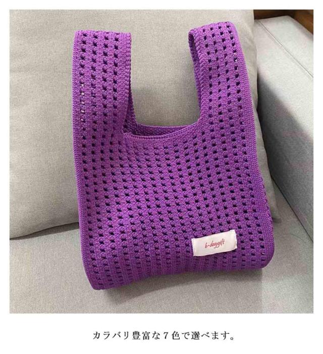 ニットバッグ トート バッグ ミニバッグ かわいい 小さめ 7色 トートバッグ レディース 手提げ おしゃれ ニット 編みバッグ シンプル 鞄 ニット