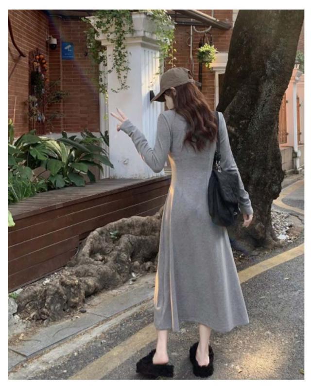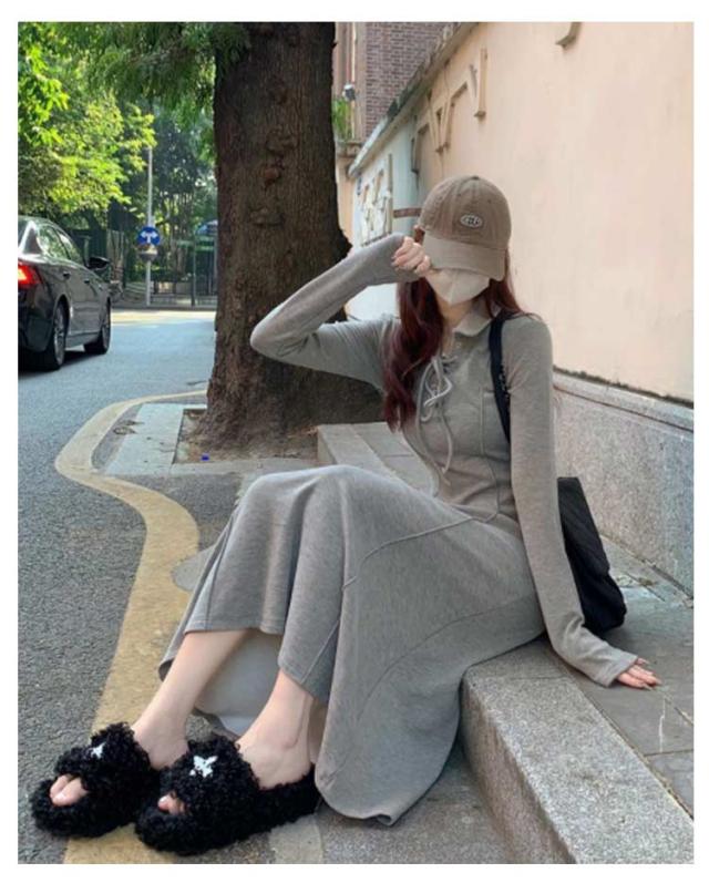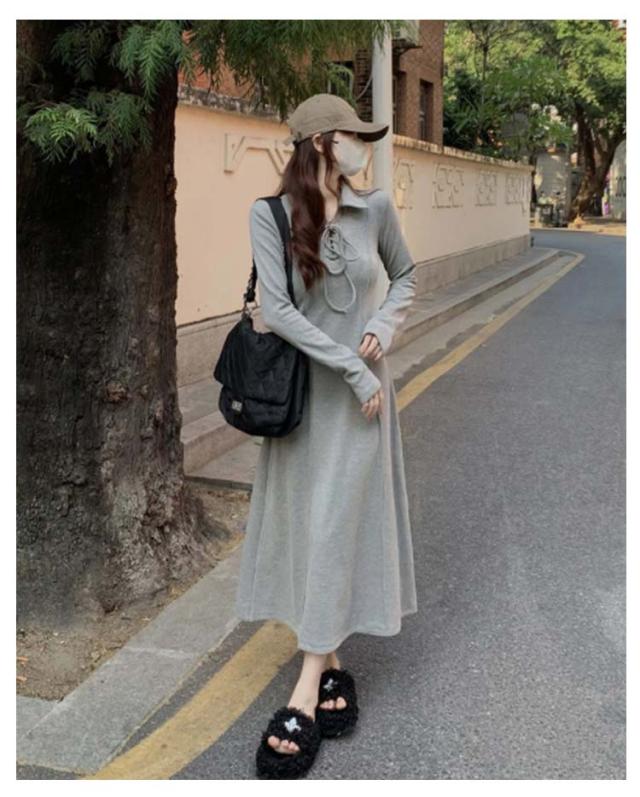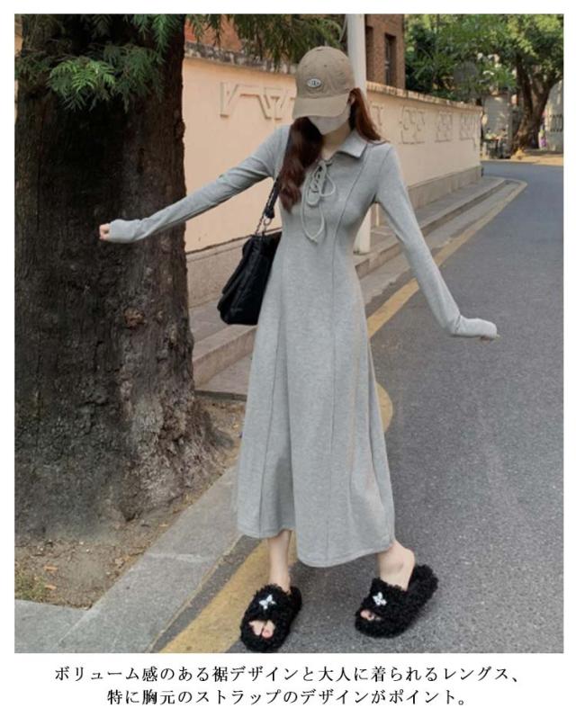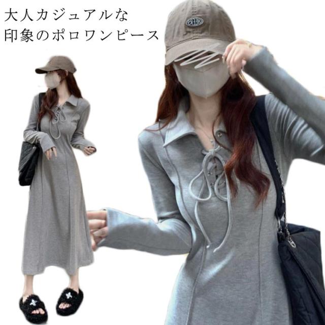 ロング ロング丈 マキシワンピース 裏起毛 ワンピース 春 秋冬 ロングワンピース 長袖 ポロワンピース 厚手 可愛い 裏ボア レディース 襟付き ポロデザイン 無地 カジュアル シンプル 体型カバー キレイめ 大人 Aライン