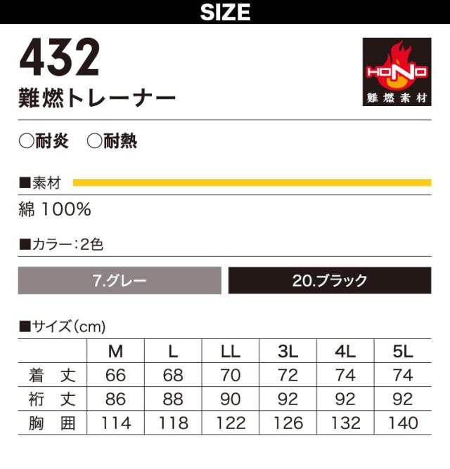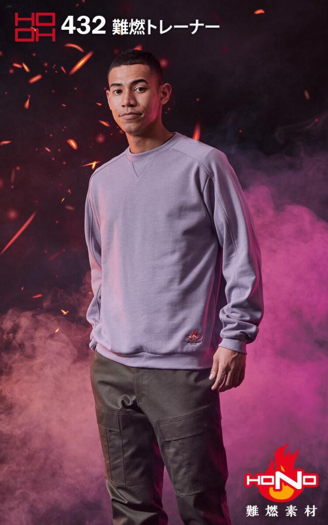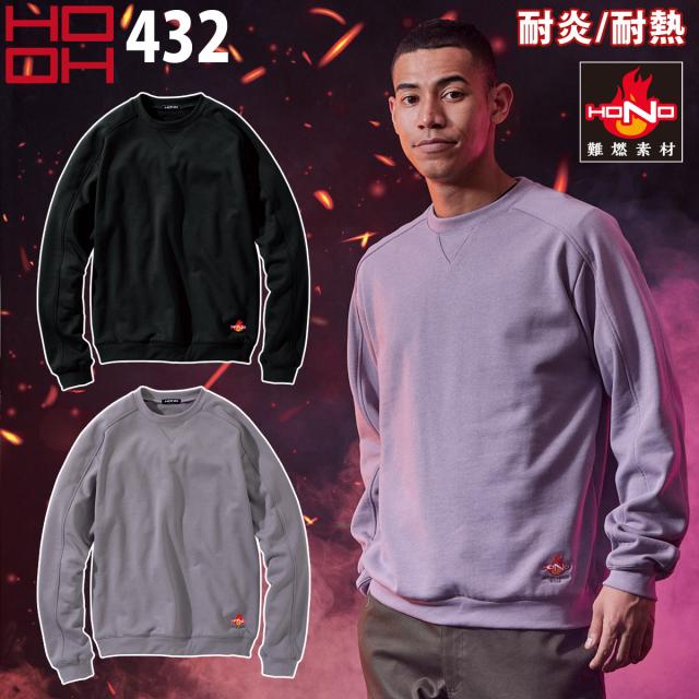 村上被服 難燃トレーナー 432 綿100% 裏パイル 袖・衿リブ素材 耐炎 耐熱 制電性 HONO 鳳皇 HOOH 通年 作業服 作業着