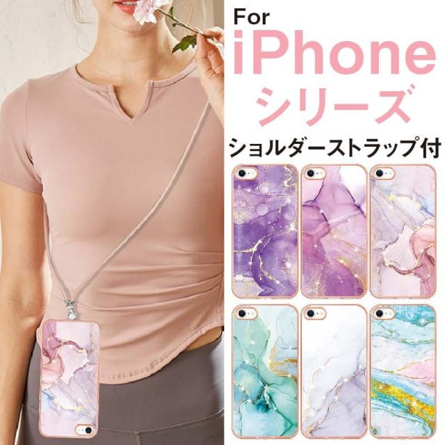 iPhone 15 15Pro 15Plus 15ProMax 14 14Plus 14Pro 14ProMax 13 13Pro 13ProMax 13mini SE2 SE3 7 8 11 11ProMax 12 12ProMax ケース カバー 背面型 ショルダー スマホショルダー 大理石 ワイヤレス充電 おしゃれ かわいい 韓国 大人女子 耐衝撃 面白い