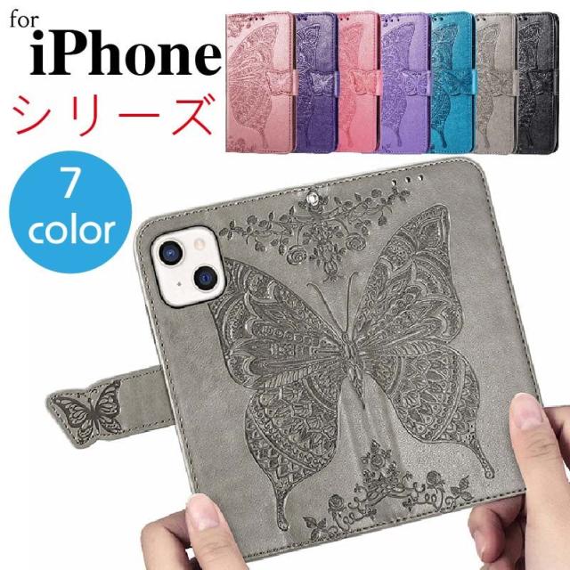 iPhone 15/15 Pro/15 Plus/15 Pro Max/14/14 Pro/14 Plus/14 Pro Max/13/13 Pro/13 Pro Max/13 mini/SE3/SE2/7/8/12 Pro Max mini/11 Pro/XR/X/Xs ケース カバー 手帳型 花 蝶 おしゃれ かわいい ストラップ 韓国 大人女子 耐衝撃 マグネット 画面