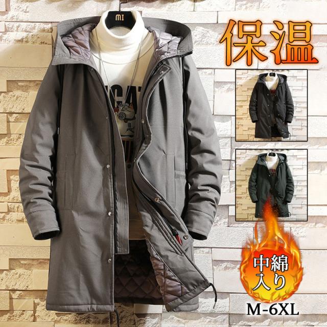ダウンコート 中綿コート メンズ ロングコート フード付き ジャケット 中綿入り 防寒 無地 秋冬 暖かい アウター カジュアル
