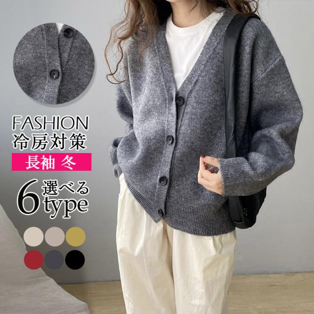 \新作2点買うと15%OFF /カーディガン 長袖Vネックニット レディース ニット アウター 秋服 春 セーター アウター 長袖 冬 ゆったり 暖