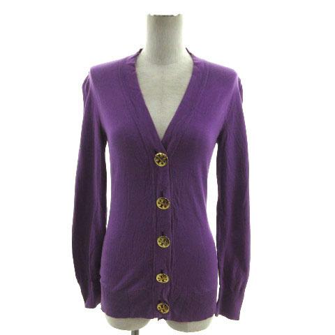 【中古】トリーバーチ TORY BURCH カーディガン ニット 長袖 ロゴボタン コットン パープル 紫 ゴールド XS