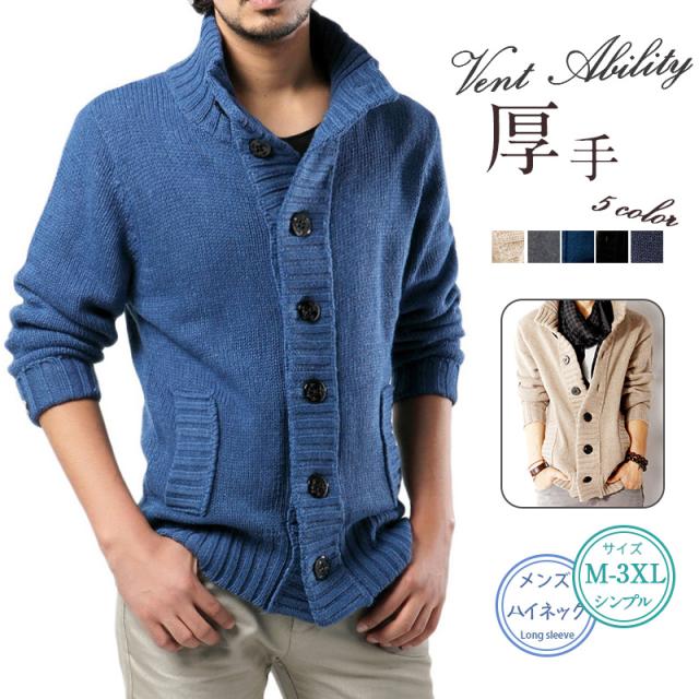 ニットジャケット メンズ 裏起毛 スタンドカラー ニット カーディガン ハイネックニット ジャケット メンズファッション 春 秋冬 おしゃれ