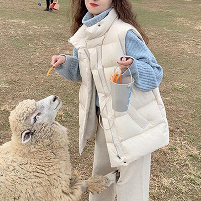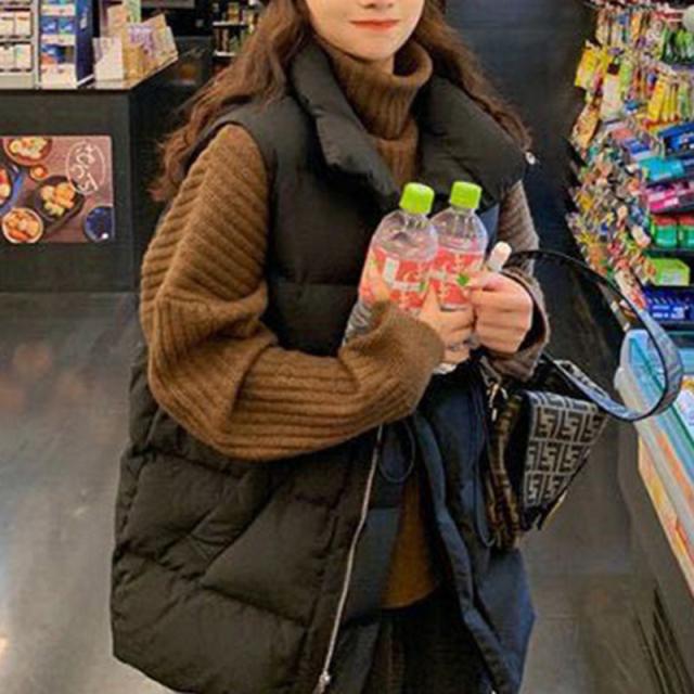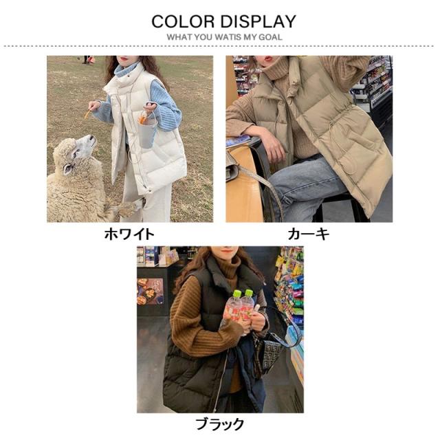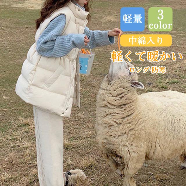 ダウンベスト レディース ジレ ロング丈 ハイネック 羽織り 軽量 着痩せ シンプル きれいめ カジュアル 保温 暖かい 防寒 可愛い 秋冬