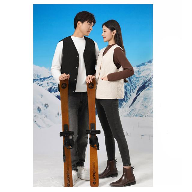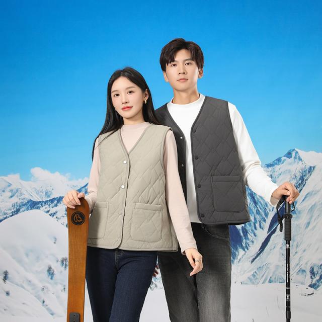 ◎暖かみがあり軽い着心地のベストを着ぶくれ感を抑えたすっきりシルエットでおつくりしました。