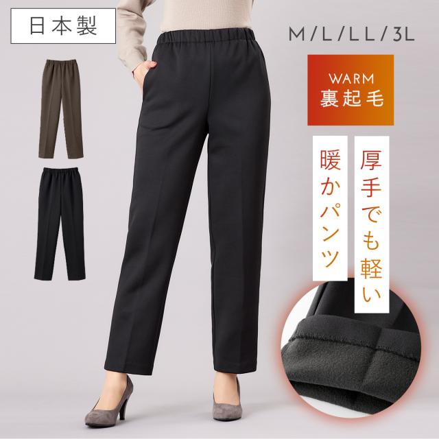 裏起毛 パンツ レディース 冬 きれいめ 日本製 ウエストゴム ゆったり 大きいサイズ M L LL 3L 総ゴム ポケット付き 暖かい あったか裏起毛総ゴムパンツ 50代 60代 70代 80代 ミセスファッション シニア 大人綺麗 ブラック チャコール 股上深め