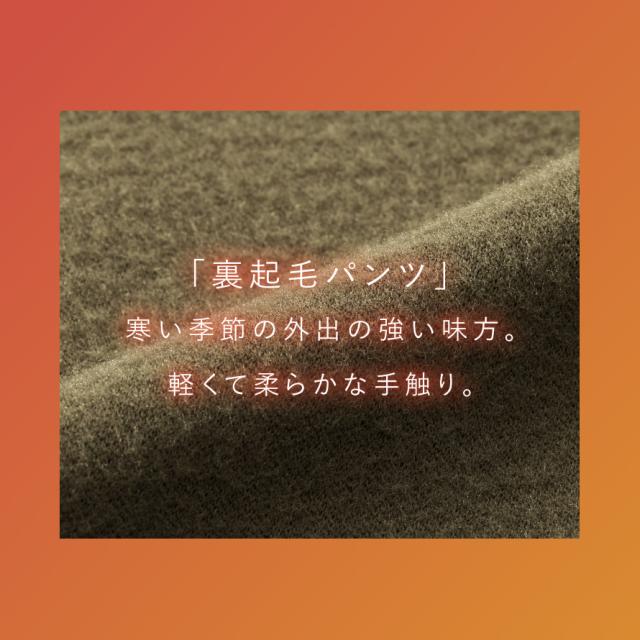 寒い季節にうれしい、あったか裏起毛パンツ。ふんわり柔らかな裏起毛素材が空気をたっぷり含み暖かい。動きやすく軽いはき心地で、一度履いたら手放せない快適さです。