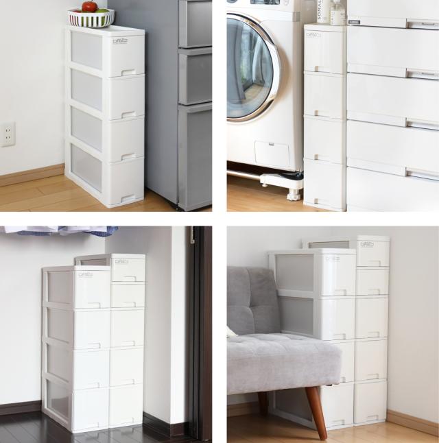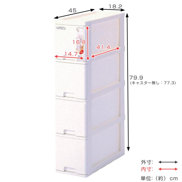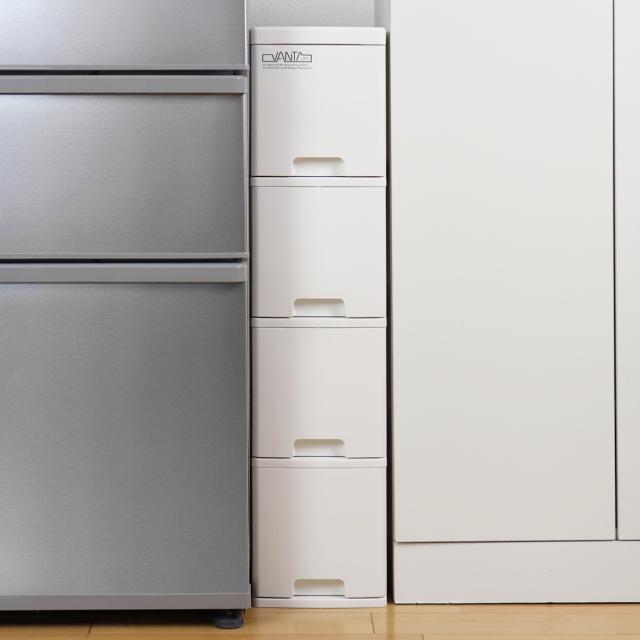 横幅18.2cmとスリムながら、4段の引出しでたっぷり収納できます。