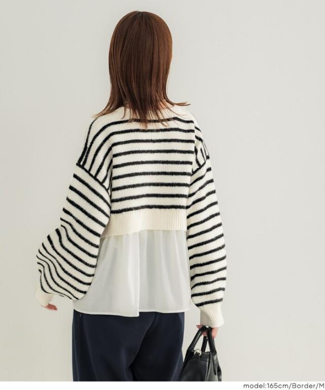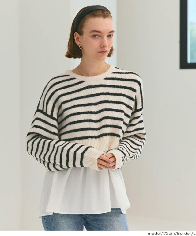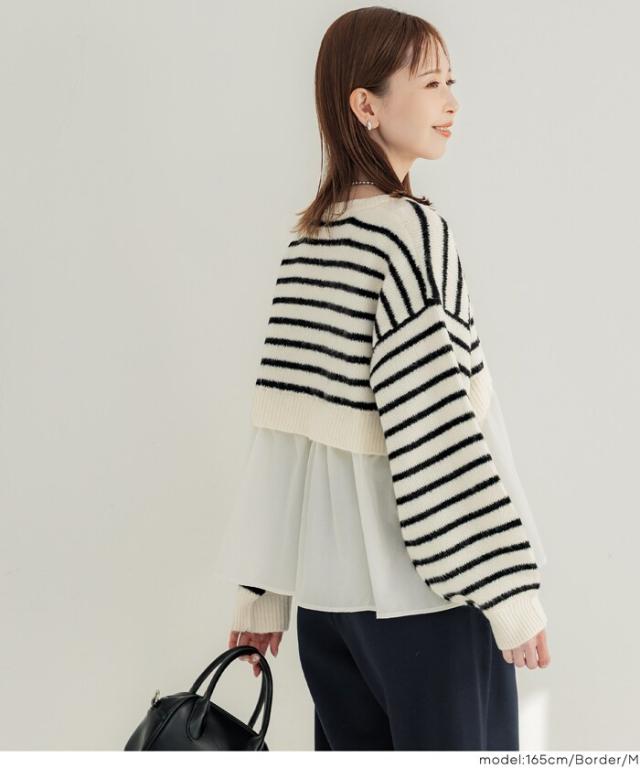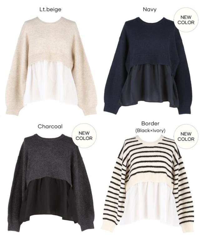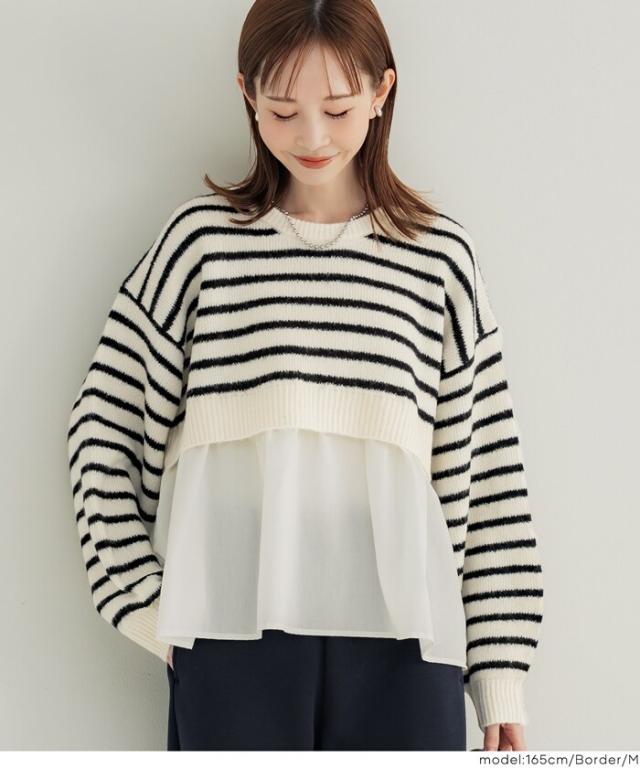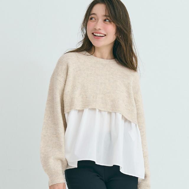 1枚で華やぐレイヤード風ニットプルオーバー