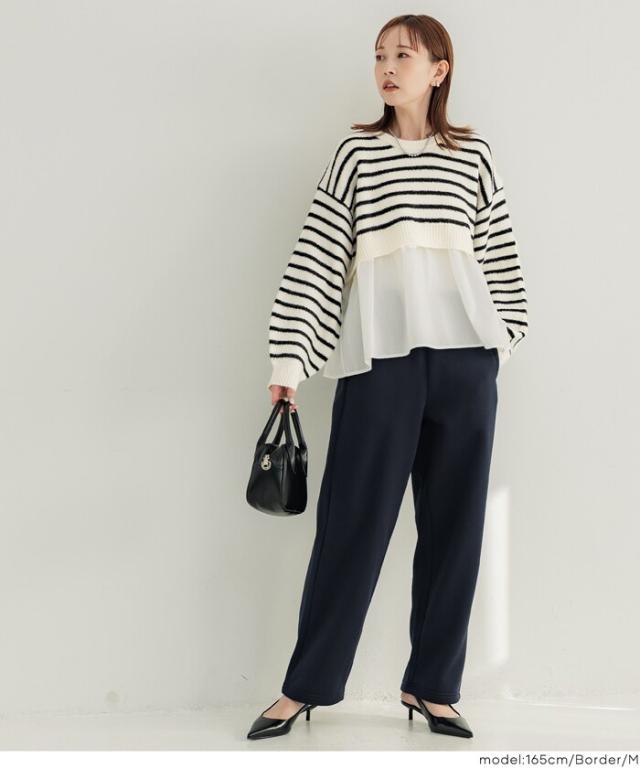 異素材を組み合わせたドッキングデザインで、着るだけでこなれ感のあるスタイルに。